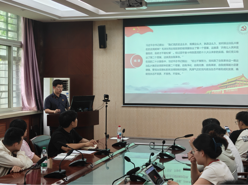 6月26日,冰球突破豪华版官方网站研究生结构工程第三党支部与建工系教工党支部联合支举办了一场以“学习中央八项规定精神”为主题的党课活动,徐训同志担任主讲人,支部全体党员及部分积极分子参与学习。徐训老师从中央八项规定精神的重要意义出发,结合历史背景、典型案例和本质内涵,深入浅出地讲解了八项规定精神的核心要义,引导党员们强化纪律意识,筑牢思想防线。