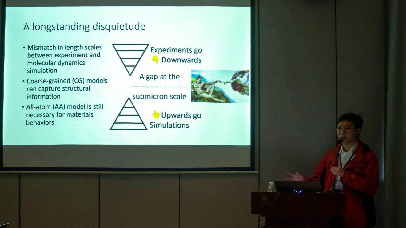 报告摘要:分子动力学与实验之间不匹配的长度尺度是二者不能直接进行相互验证的主要阻碍。硅酸钙水合物是一种典型的结构复杂材料,具有纳米尺度(几纳米)的层状结构和亚微米尺度(几百纳米)的薄片状结构。分子动力学模拟通常在纳米尺度上进行,远小于微米尺度实验,如纳米压痕。将实验继续缩小到纳米尺度非常困难,而我们开发了一种升尺度建模方法,采用了一种粗粒化分子动力学方法,并将其重映射到全原子模型以进行精确计算。本文详细介绍了该方法,并就纳米压痕试验的直接模拟进行了案例分析和讨论。