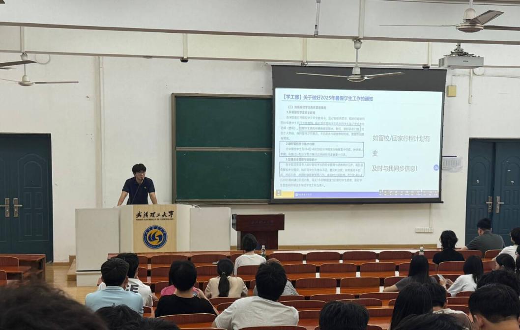 6月27日,冰球突破豪华版官方网站2024级研究生在马房山西院东教合三教室举行六月第二次研学讲堂。此次研学讲堂由研究生辅导员周旭老师主持,学院研究生工作办公室文新发老师、广东唐百诗科技有限公司唐诗先生、吴斯斯女士参与,旨在帮助大家科学规划实习实践、拓宽视野、明确暑期安排和安全纪律等。