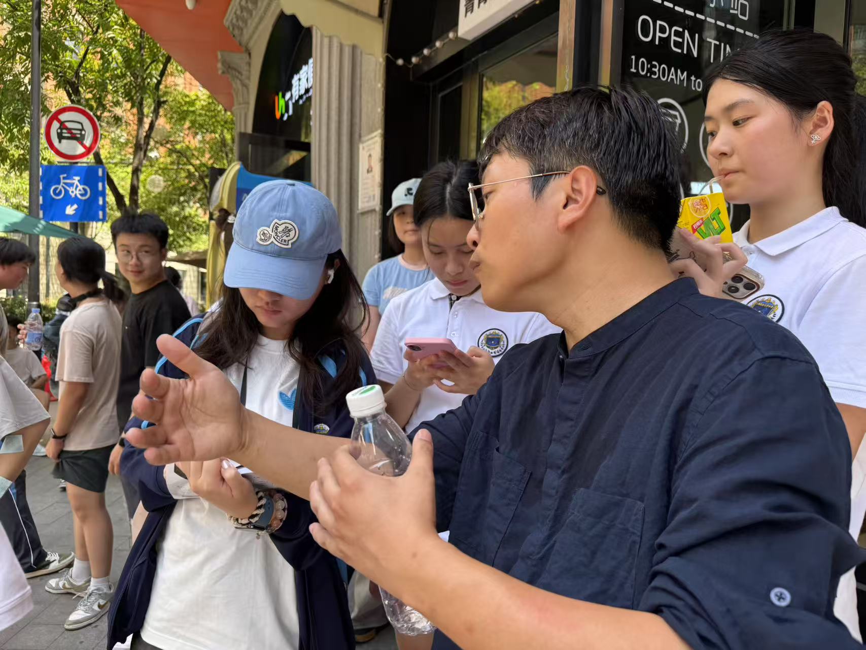 6月17日下午,余泽阳老师又带领其中48名师生走进汉口历史风貌区,开展了一场生动的“City Walk”实践活动。沿着中山大道与江汉路一带,师生们近距离欣赏了多座保存完好的近代建筑。余老师结合前一天的讲座内容,现场讲解了建筑的风格特征、历史背景与建造年代,使学生们在实际空间中感受到建筑所承载的文化与历史价值。