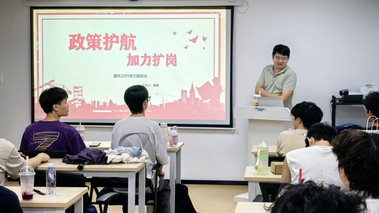 本次班会通过政策解读、专业导航与经验分享三个维度的深度融合,不仅为同学们提供了权威的政策信息、清晰的升学就业路径和实用的职场锦囊,更极大地提振了同学们面对就业市场的信心,强化了主动规划、积极行动的意识。班长在总结中表示,希望全体同学能认真消化吸收班会内容,将学习成果转化为实际行动,充分利用好政策红利,锚定目标,提升技能,以扎实的专业功底、积极的求职态度和坚韧的职业精神,迎接未来的挑战,在广阔天地中书写建环学子的精彩华章。