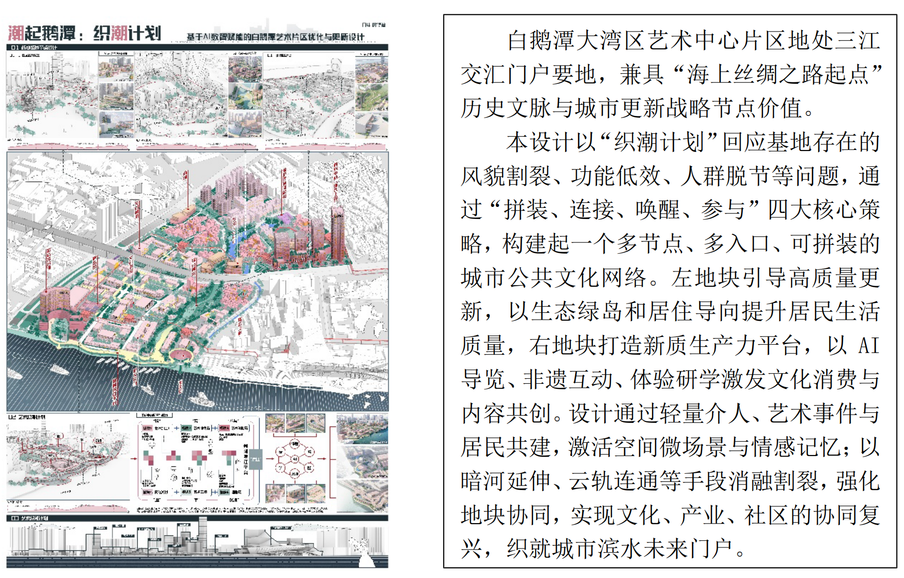 在冰球突破豪华版官方网站的大力支持下,建筑与城乡规划系周密安排,结合《城市设计》专业主干课程,组织建筑学和城乡规划两个专业学生参与竞赛。今年3月,彭恺副院长带领郭建、张森、余泽阳老师和部分本科生前往广州市,开展深入的实地调研,取得了丰富的设计素材;随后,组织强有力的设计竞赛指导小组,探索分组设计与联合指导相结合的教学方法。在陈铭、李传成、郭建、刘凌云、莫文竞、张森、王发堂、余泽阳、王璐琦等专业老师和2021级建筑学、城乡规划全体同学的共同努力下,我校首次参赛就取得了可喜的成绩。