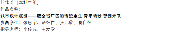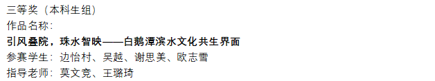 赛事规定每个高校限送三份设计作品,冰球突破豪华版官方网站建筑与城乡规划系选送的设计作品在激烈竞争中全部获奖,一举斩获一等奖、三等奖、佳作奖各一项。同时,冰球突破豪华版官方网站还荣获优秀组织奖,建筑学2021级王心忆同学获得荣誉规划师奖。